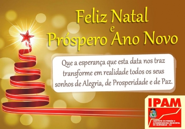 Que a esperança que esta data nos traz transforme em realidade todos os seus sonhos de alegria, prosperidade e paz. São os votos do IPAM (Instituto de Pensão e Aposentadoria Municipal de Cantagalo/RJ)